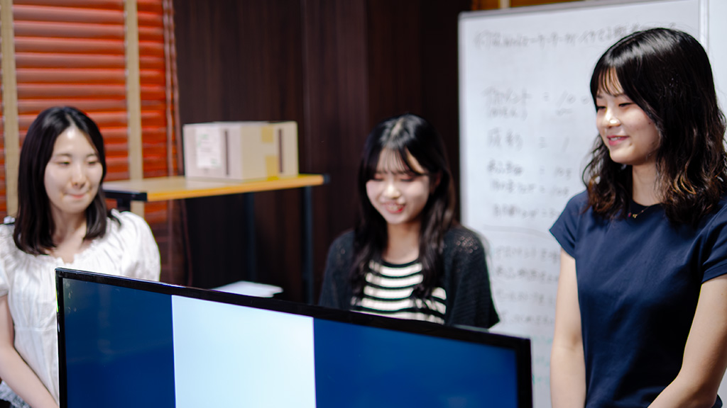 なんのスキルもないまま始めて、初回の出社日までは不安も大きかったですが、その不安はすぐに飛んでいきました。ミーティング室に全員で集まった時に、亀山堂の皆さんが社長も含めてすごく楽しそうで笑っている雰囲気が私にとって一気に不安が吹き飛ぶ瞬間でした。業務を始めてからも、作業中に話しかけてくださったり、温かい雰囲気に居心地の良さを感じています。今では今日どんなことするのかな、前よりもっといいもの作るぞ!と楽しみながら出社しています。このモチベーションになっているのは目標を達成させる気持ちはもちろんですが、皆さんが成果物に対してや、工程の段階でもたくさん褒めてくださり、それが次の業務のやる気になっています。ありがとうございます。